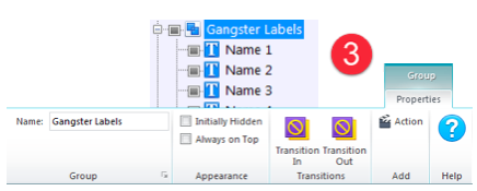 Groups can contain all kinds of objects, images, text blocks, audio and actions (we’ll focus on action groups in a later blog post). To group a set of objects that are already created, complete the following: